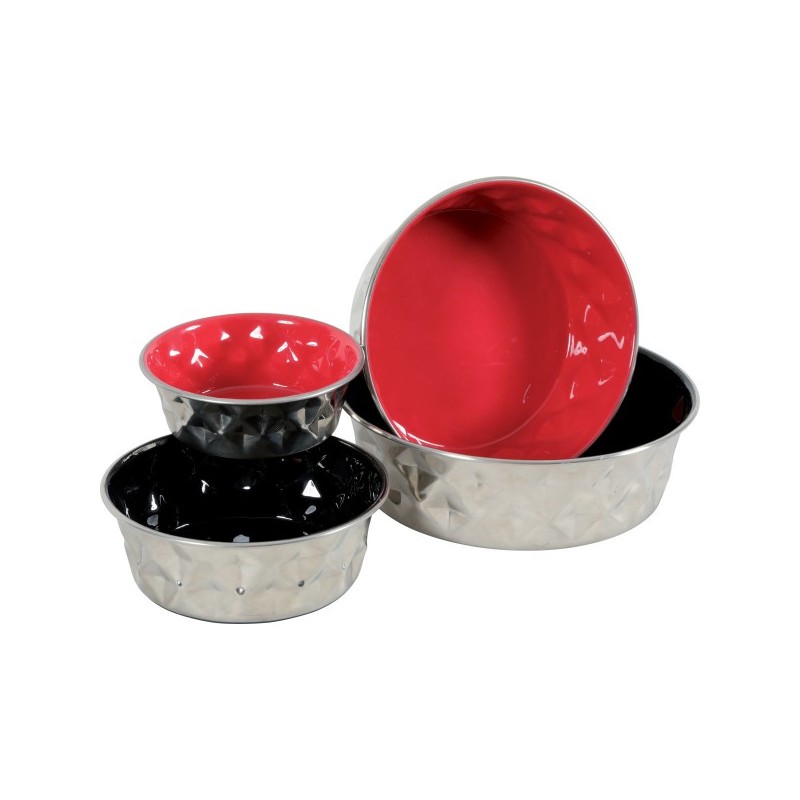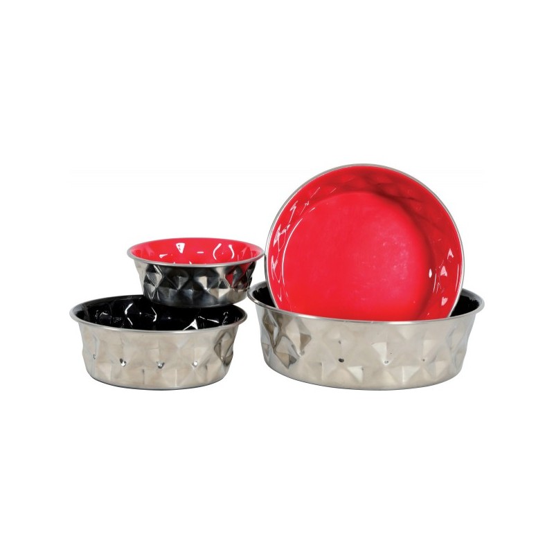Miska metalowa, emaliowana wewnątrz, gumowana antypoślizgowa podstawa.